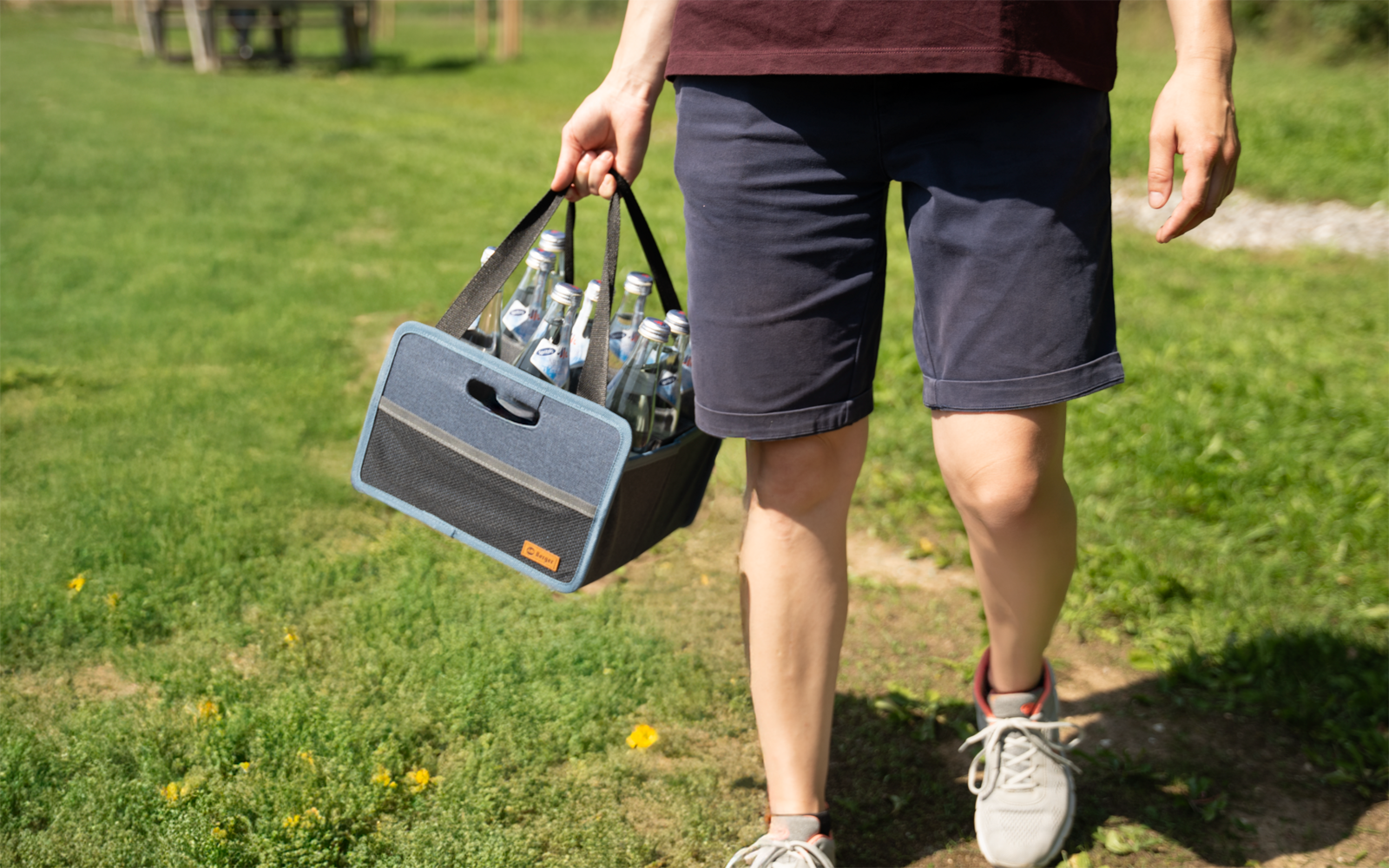 Damit nichts zu Bruch geht - die Berger Faltbox Milo mit Flascheneinsatz