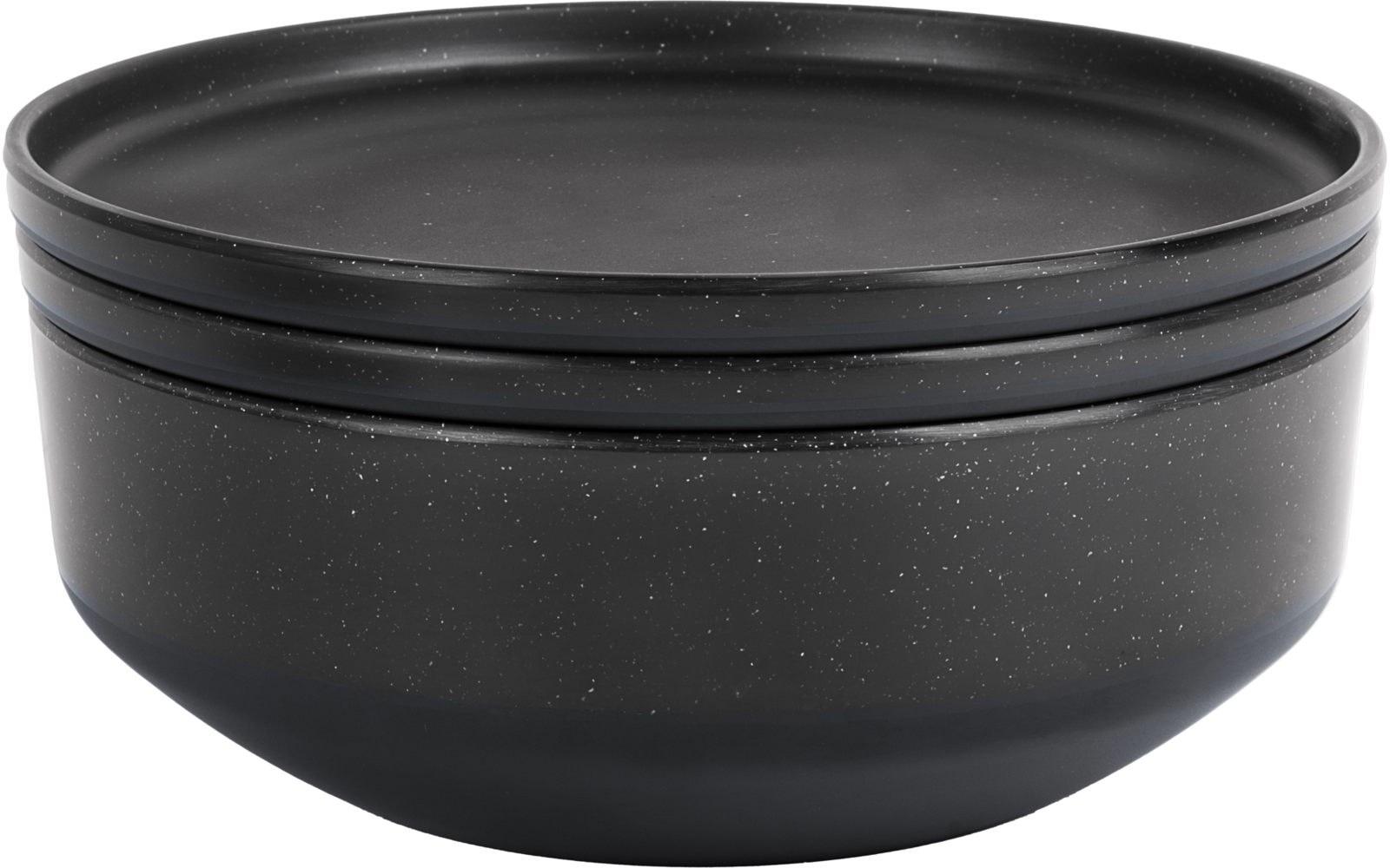 Mit dem 6 in 1 Odette Double Black Set erhältst du eine elegante, funktionelle und besonders platzsparende Lösung für Reisen, Camping oder Picknick. Das Set besteht aus hochwertigem Stonetouch Melamin-Mineralgemisch und vereint alle wichtigen Geschirrteile für zwei Personen in einer kompakten Salatschüssel, in der sich alles verstauen lässt. Die Oberfläche ist hart, formstabil und überzeugt durch ihren Porzellan-Touch, während das Material gleichzeitig leicht und bruchsicher bleibt. Dank der rutschhemmenden Unterseite steht alles sicher und lässt sich einfach reinigen.
