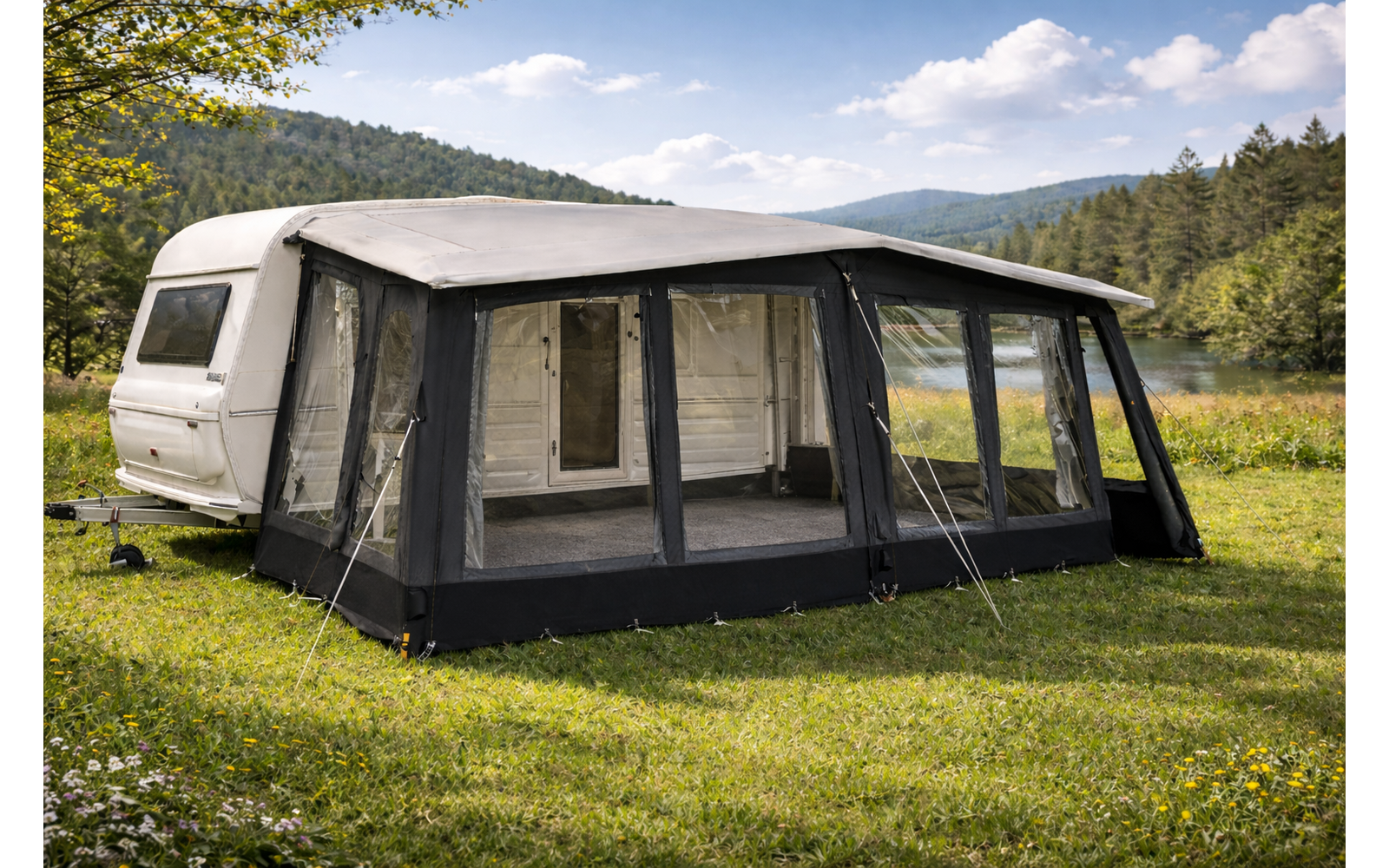 - Abdeckung der gesamten Wohnwagenlänge