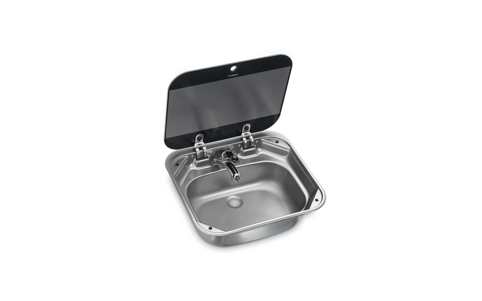 Dometic SNG 4237 Spüle Einbau Edelstahl mit Glasabdeckung 42 x 37 cm
