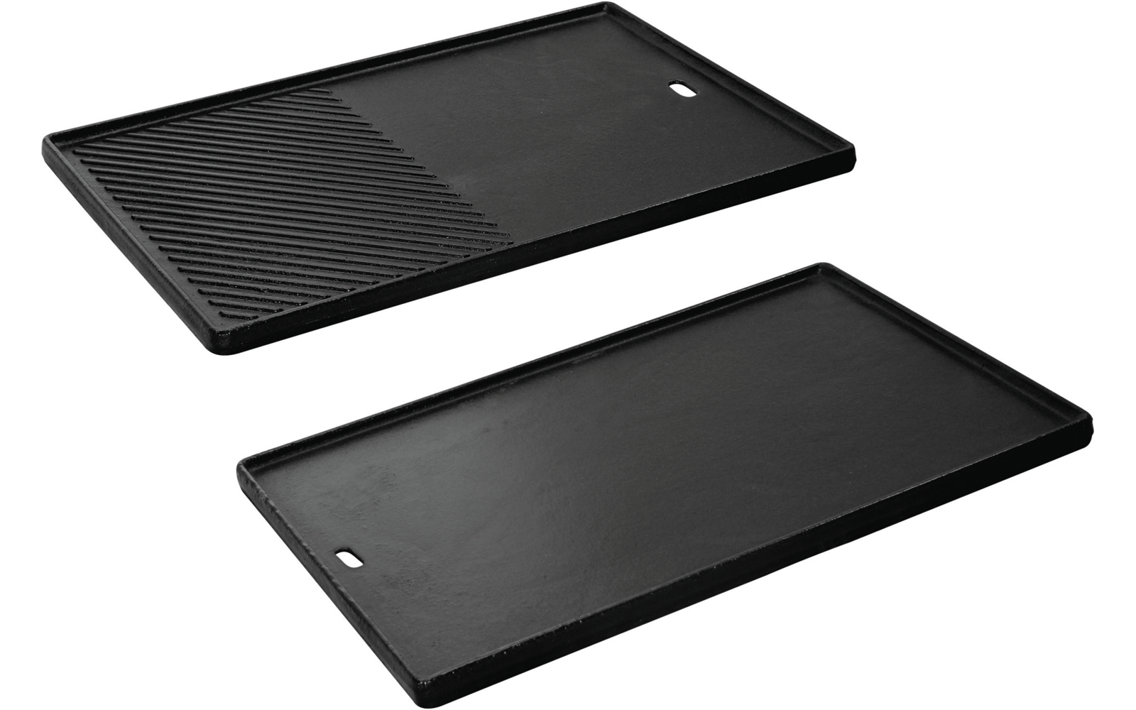 | Beidseitig verwendbare Gussplatte für vielseitiges Grillen | Passgenau für Enders Gasgrill Hyde 4+6 | Eine Seite halb gerippt/halb glatt, eine komplett glatt | Gerippter Bereich sorgt für perfektes Branding |