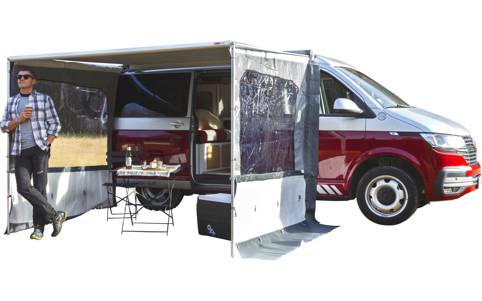 Mit der Side W Pro schaffst du dir im Handumdrehen mehr Schutz, Privatsphäre und Komfort an deiner Markise. Die Seitenwand aus wetterfestem Vinyl (Polyvinylchlorid) besitzt eine große transparente Crystal-Fensterfläche und eine bodenlange graue Verlängerung, die dich zuverlässig vor Wind und Regen schützt. Dank der Aluminium-Rafter und der Erdnägel lässt sie sich schnell und stabil direkt an der Markise befestigen – ideal für Reisemobile, Wohnwagen, Campingbusse, Kastenwagen und Geländewagen.
