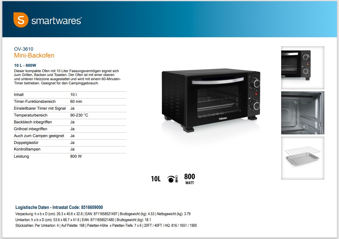 - 1x Tristar Mini-Backofen (10 l oder 20 l)