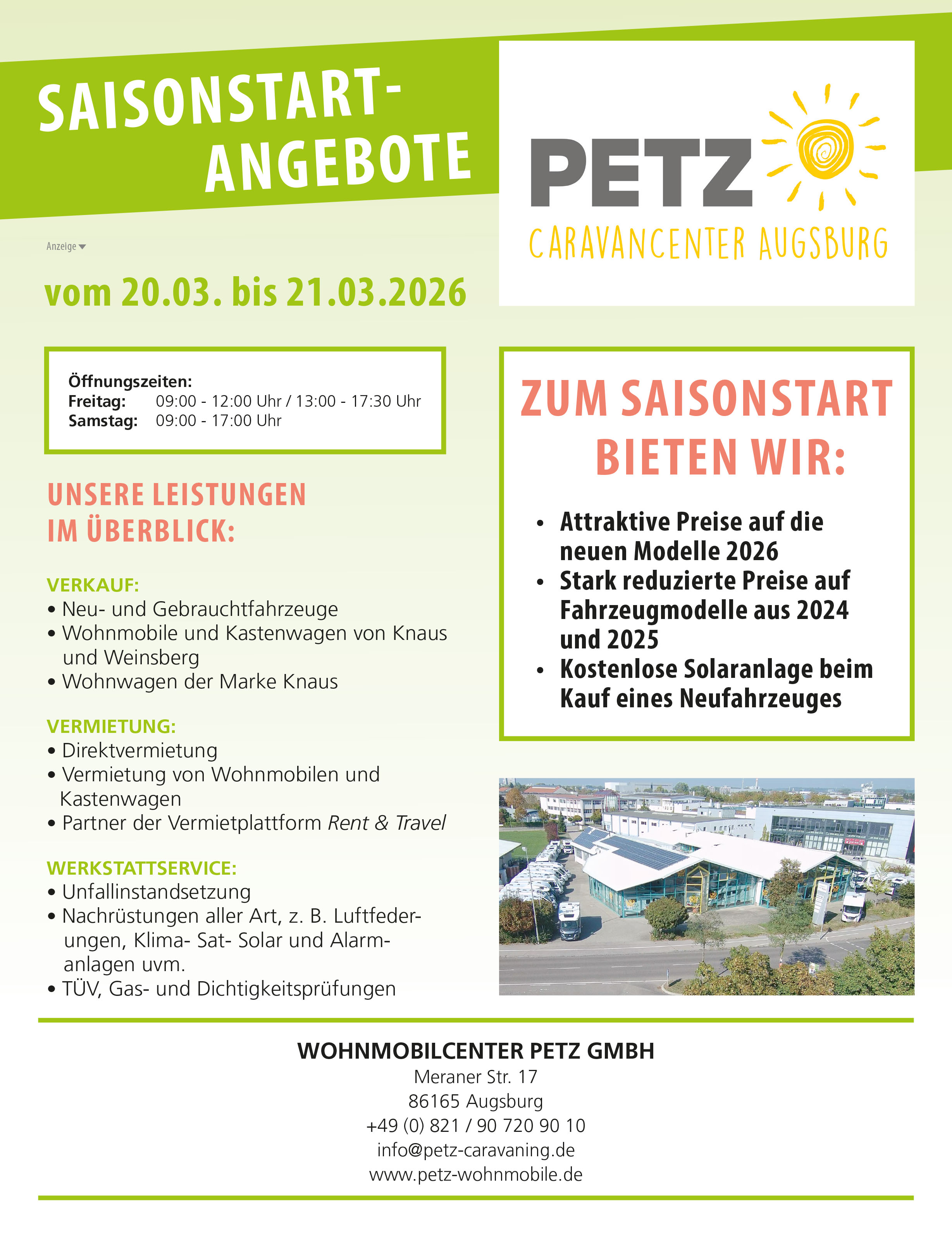 - Anbieten von Komplettpaketen (Mover, TV-Anlagen, Solar) in Verbindung mit der Werkstatt zum All-Inclusiv-Preis - auf Anfrage