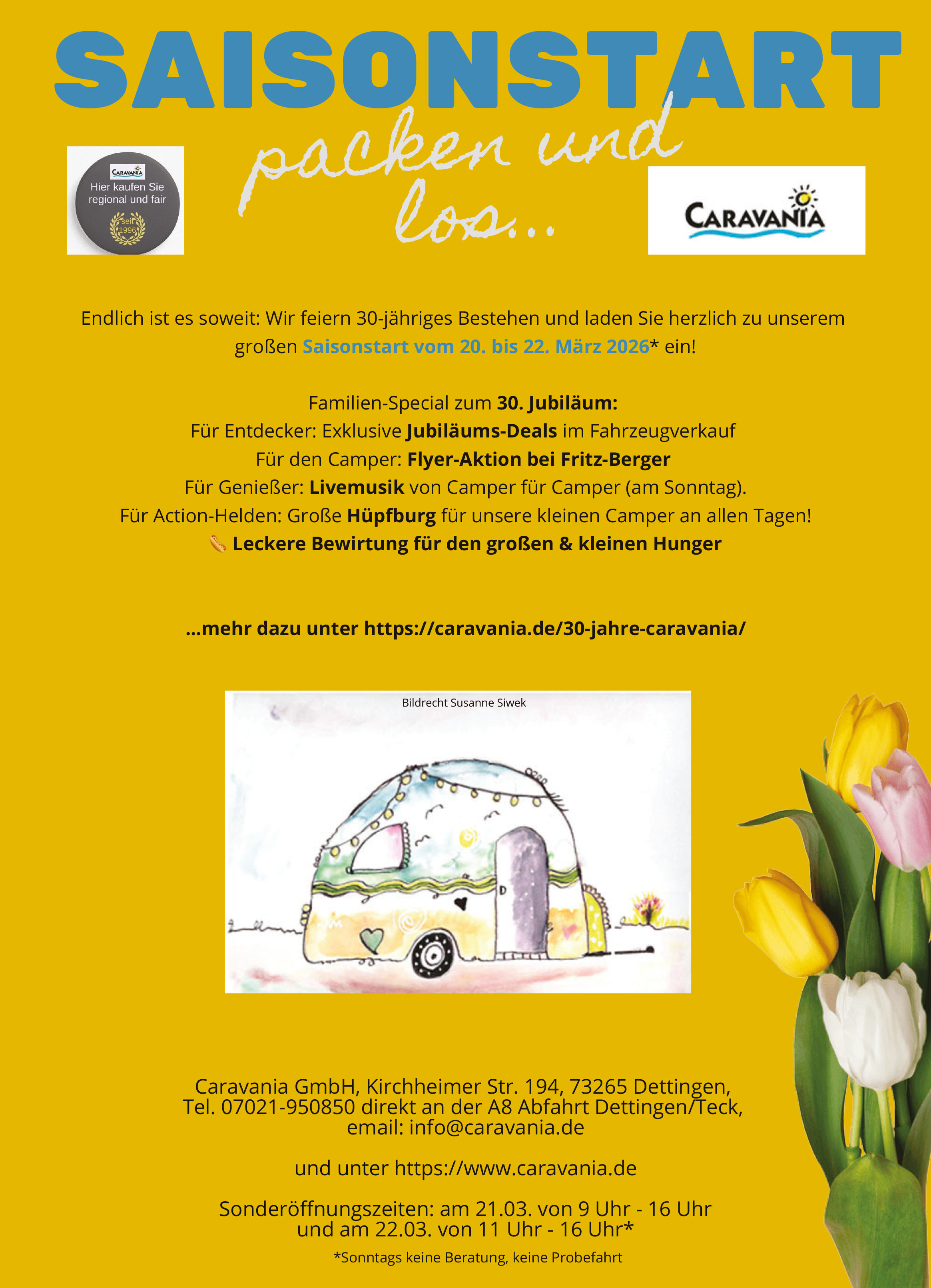 Kontakt Tel.: 07021 950850 info@caravania.de www.caravania.de |