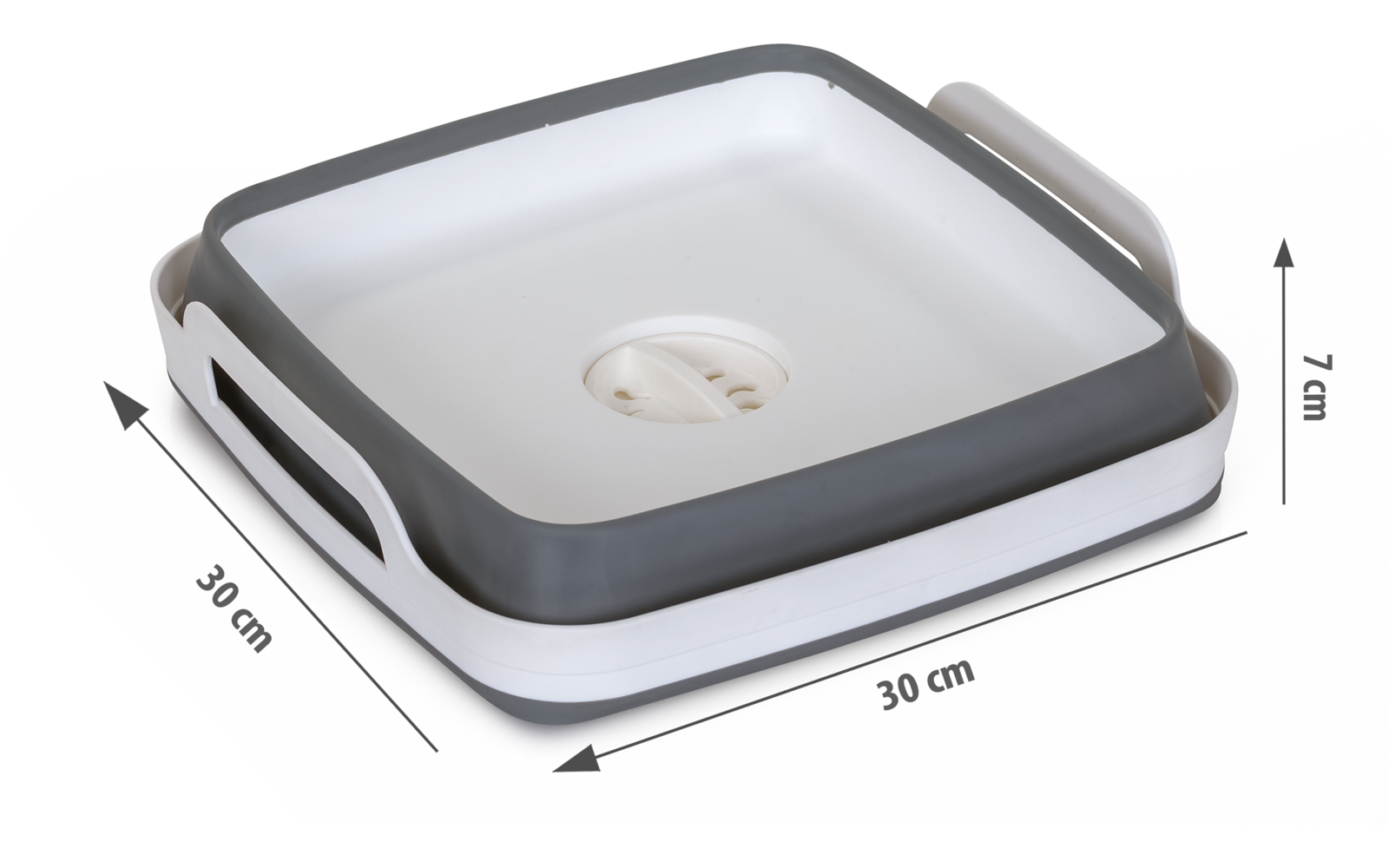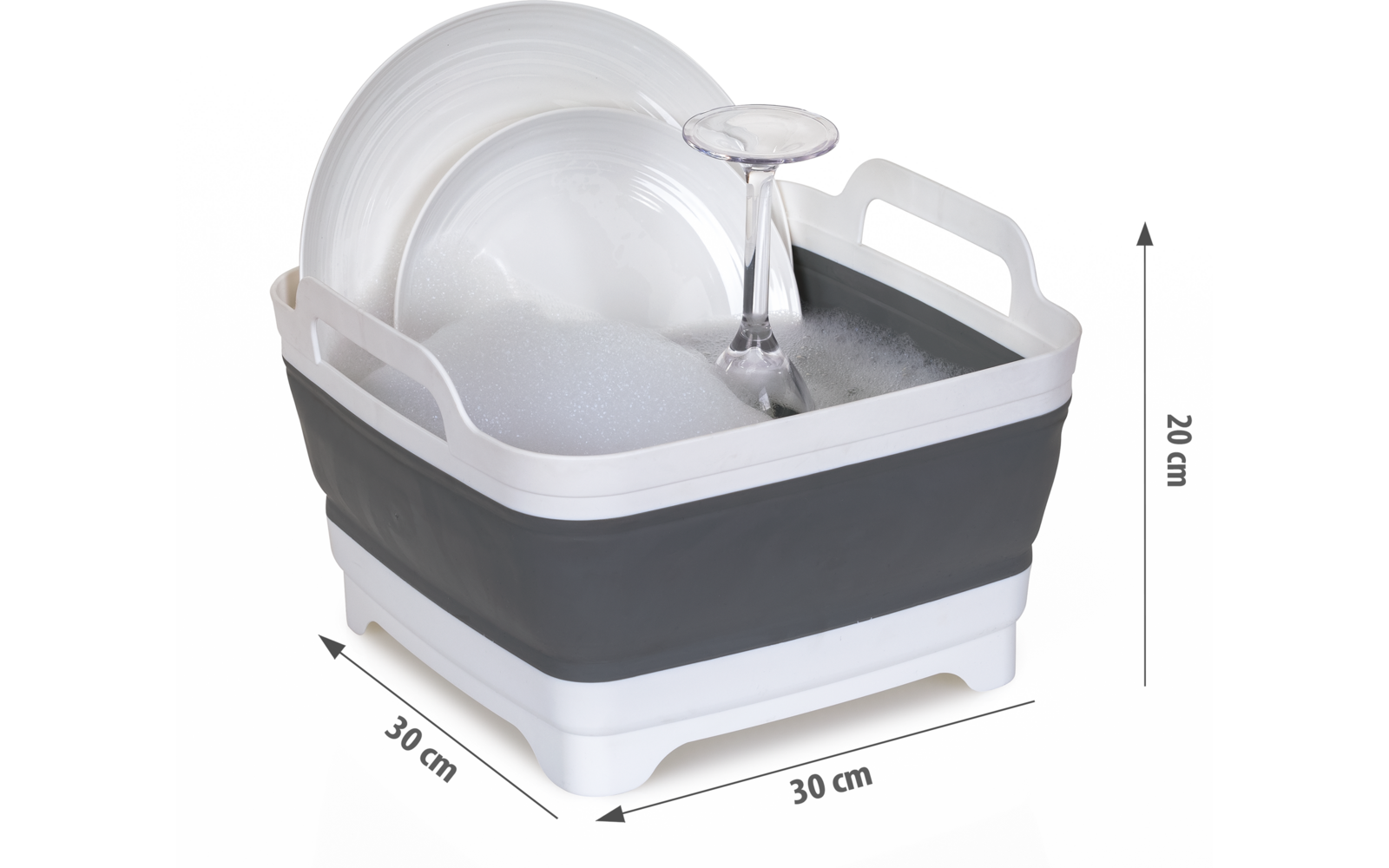 Dieses faltbare Becken eignet sich zum Abspülen von Geschirr oder zum Waschen von Wäsche beim Camping oder im Haushalt. Dank der faltbaren Konstruktion lässt es sich platzsparend verstauen. Ein integrierter Wasserauslass erleichtert das Entleeren. Die Tragegriffe ermöglichen einen komfortablen Transport.