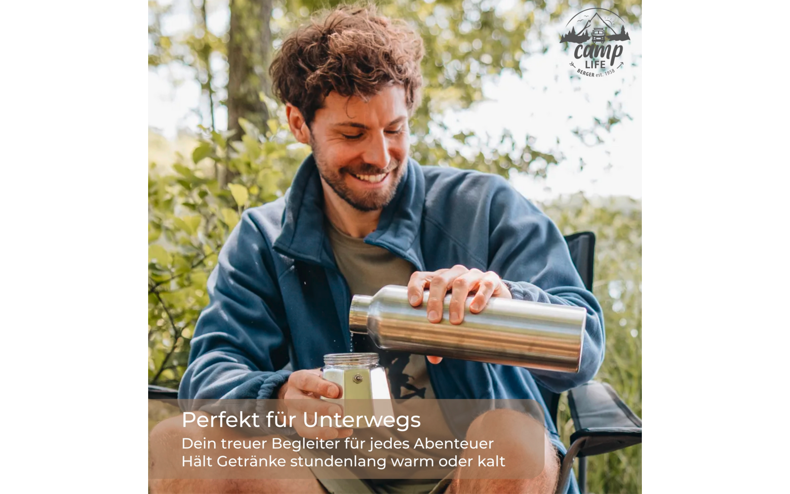 Diese doppelwandige Isolierflasche mit praktischem Deckel ist ein idealer Begleiter für Camping, Wandern und Ausflüge. Dank hochwertigem Edelstahl und isolierendem Aufbau bleiben Getränke unterwegs angenehm temperiert. Der Deckel mit Haltegriff sorgt für sicheres Transportieren – perfekt für deinen nächsten Ausflug in die Natur.