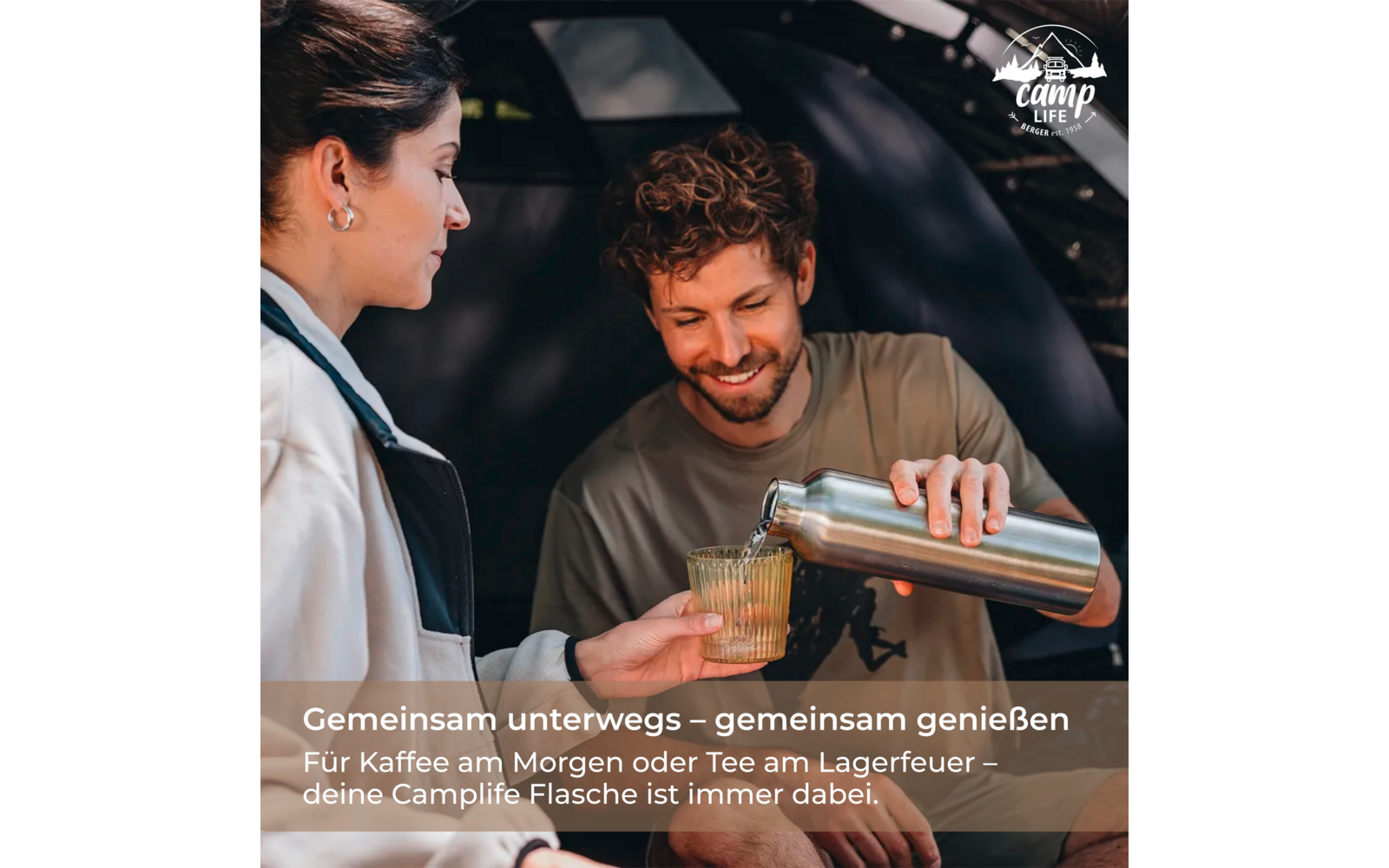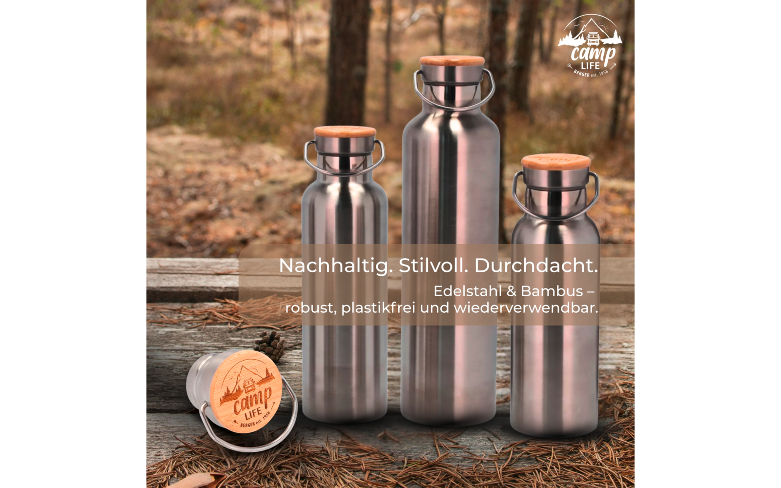 Camplife Edelstahl Isolierflasche mit Bambusdeckel